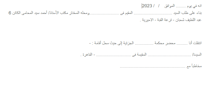 انا المحضر سالف الذكر قد انتقلت وأعلنت المعلن اليه وسلمته صورة من هذا وكلفته بالحضور امام والكائن مقرها فى ………………………  وذلك بجلستها التى ستنعقد علناً صباح يوم  ………… الموافق  /  /۲۰۱۲ امام الدائرة (  ) ليسمع المعلن اليه الحكم : –
