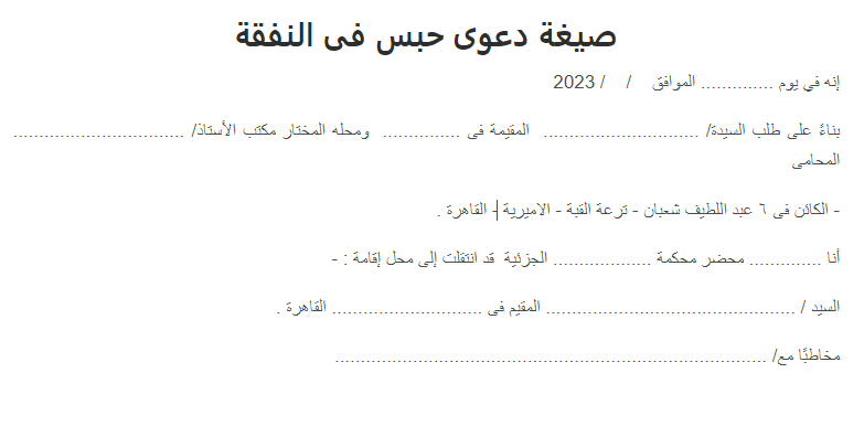 صيغة دعوى حبس متجمد نفقة صغير